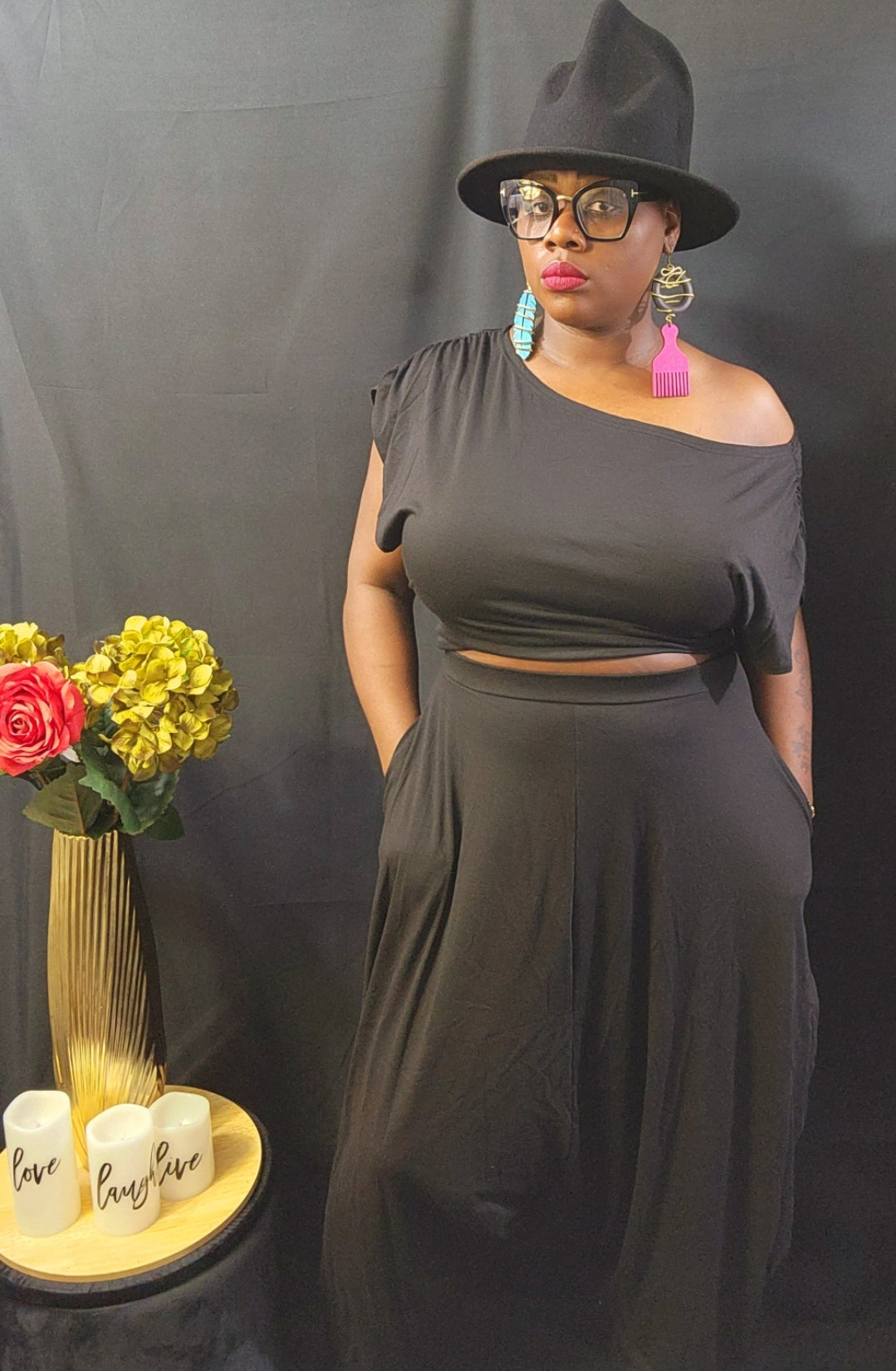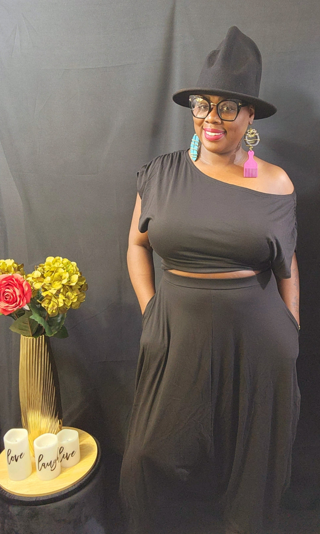 2 piece harem pants set. Pieces can be mixed and matched with other pieces. Elastic high-waisted stretched pants.