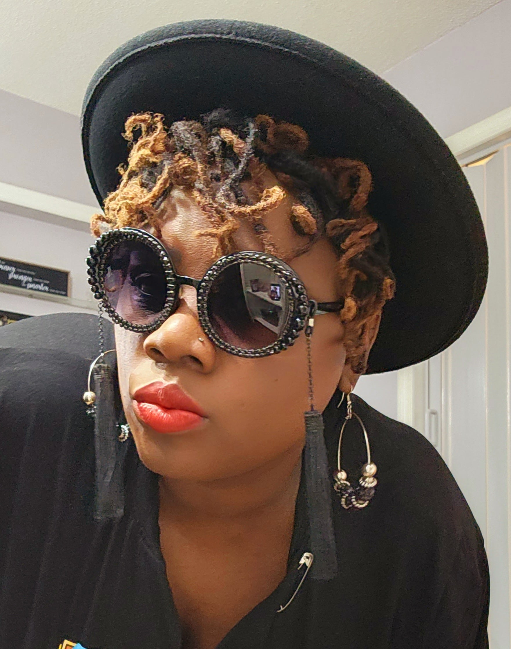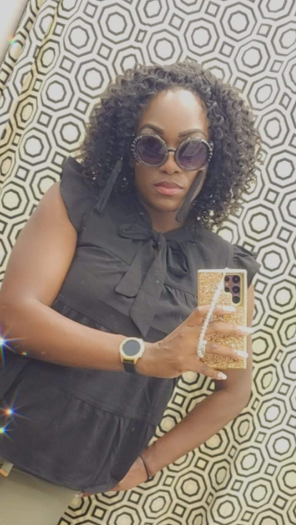 Black sunglasses with tassels. Black rhinestones around the frame.