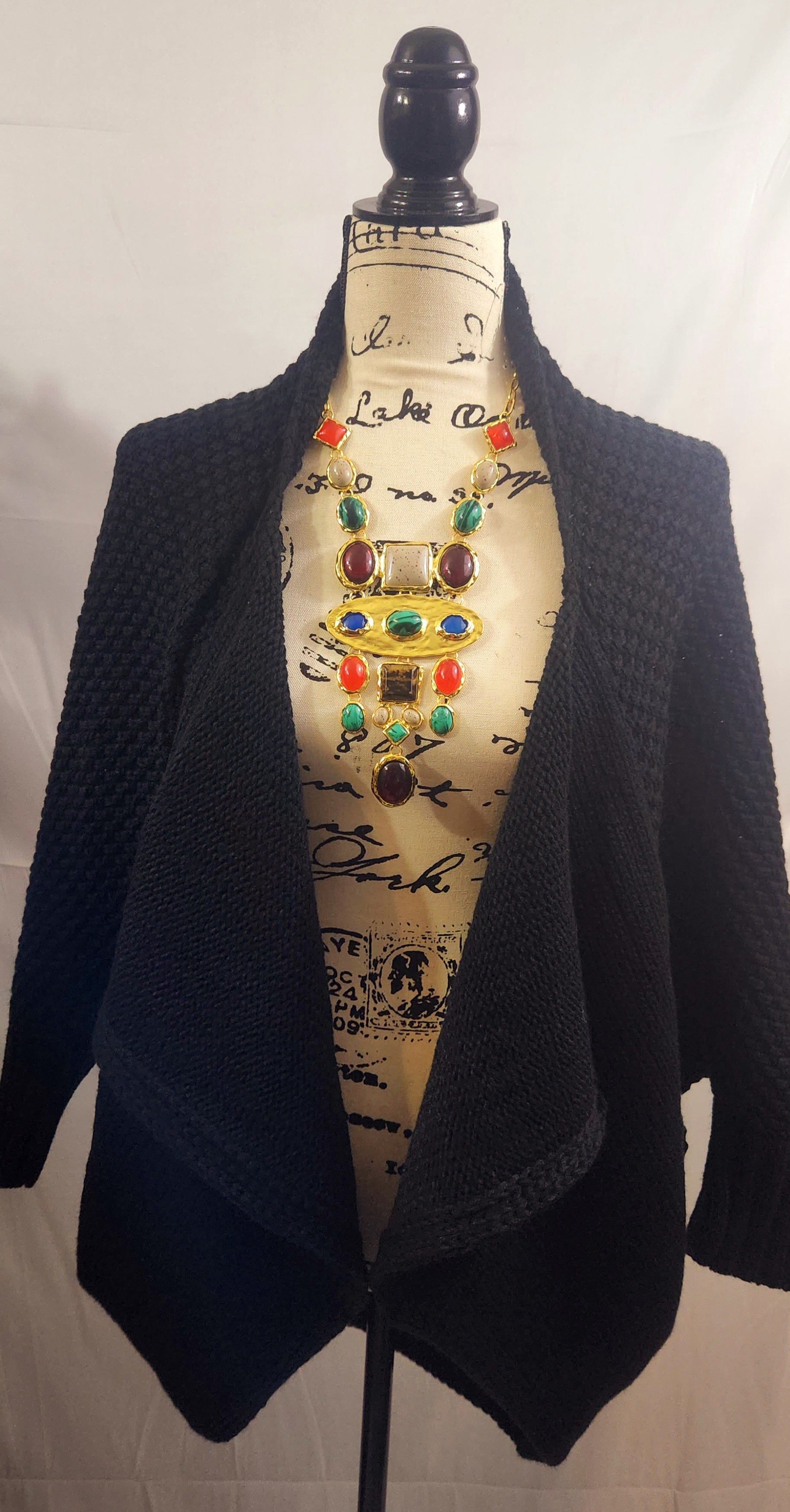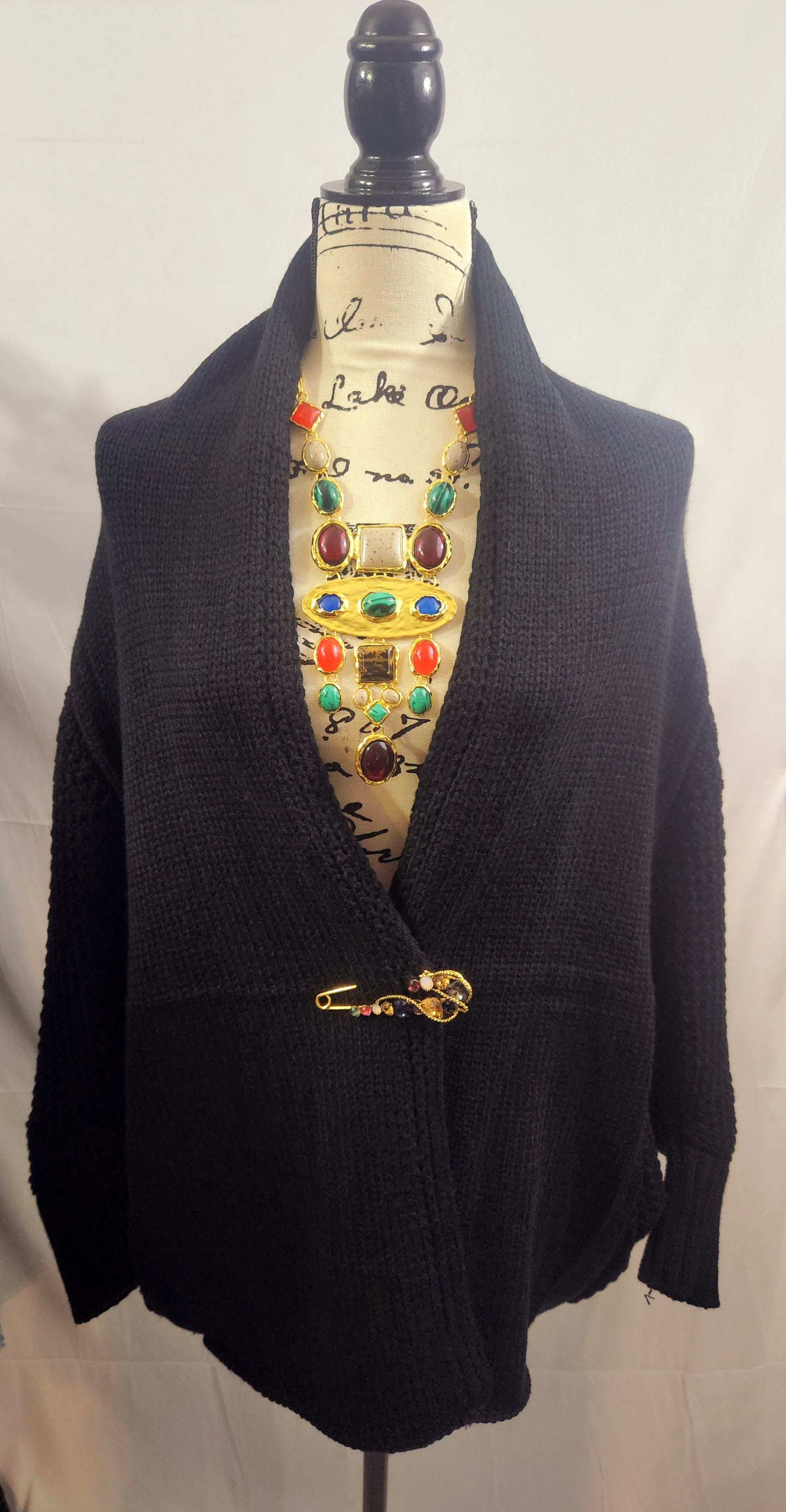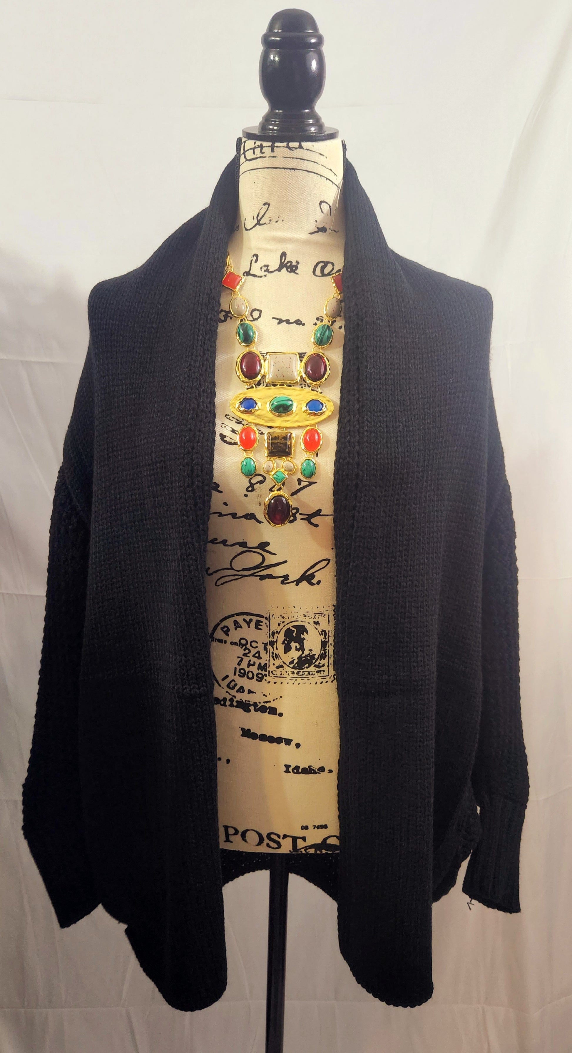 Essential cocoon style cardigan. Can be worn at least 3 different ways! You NEED this cardigan! Heavy 100% Acrylic.