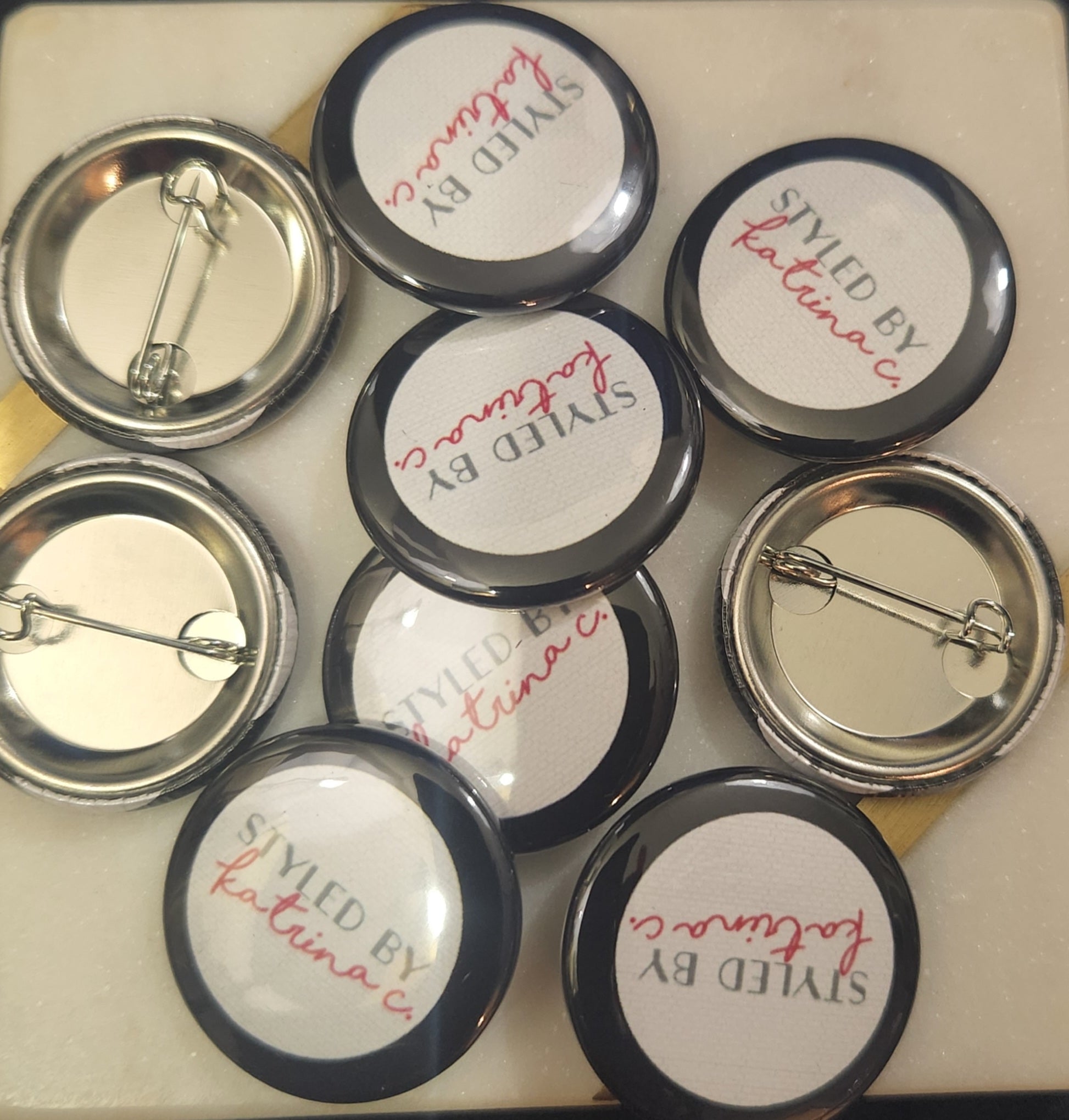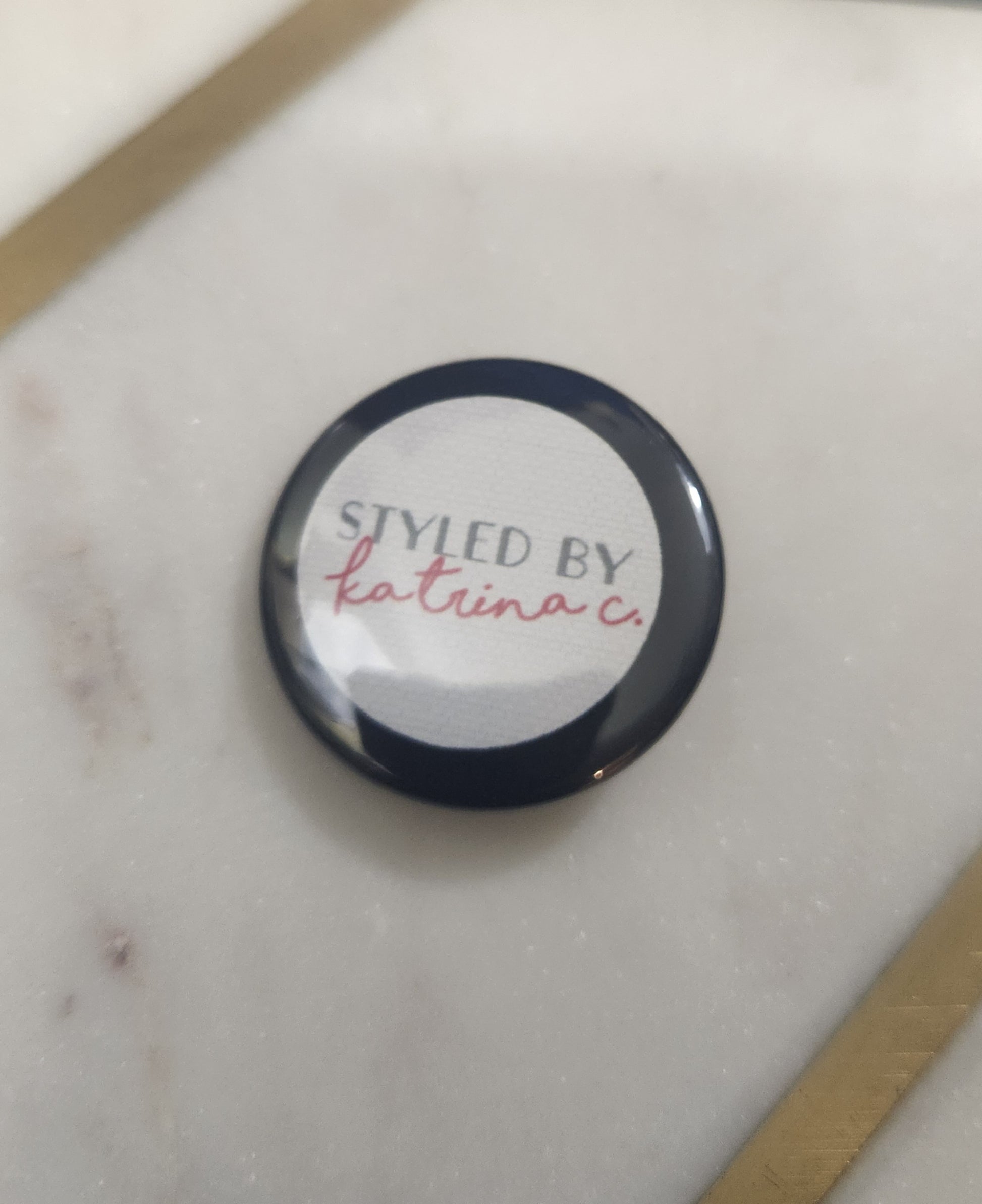 Styled by Katrina C logo button to add to your collection for your denim jackets, hats and canvas bags.